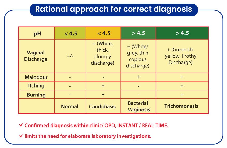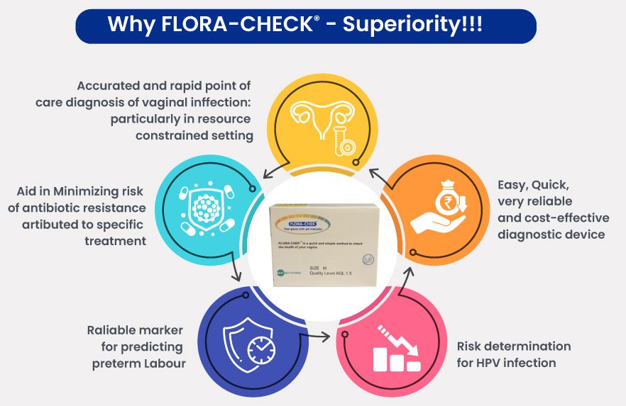 In contrast to this, FLORACHEK® helps detect an abnormal vaginal pH quickly, so that the right remedial measures can be instituted by Healthcare Professionals.